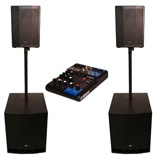 Set: 2x 18 Zoll Bass, 2x Top, 4 Kanal Mischpult mit Laptop Anschluss
