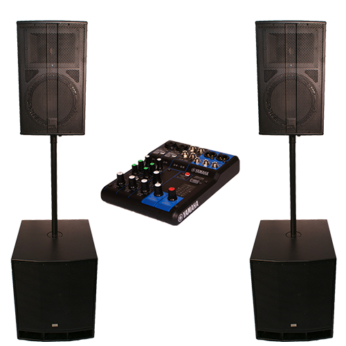 Set: 2x 18 Zoll Bass, 2x 12 Zoll Top, 4 Kanal Mischpult mit Laptop Anschluss